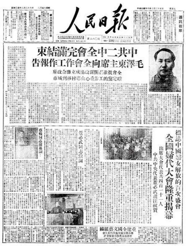 1949年3月25日,《人民日报》刊登中共七届二中全会闭幕消息,其中提到“批准召开新政协成立联合政府”。