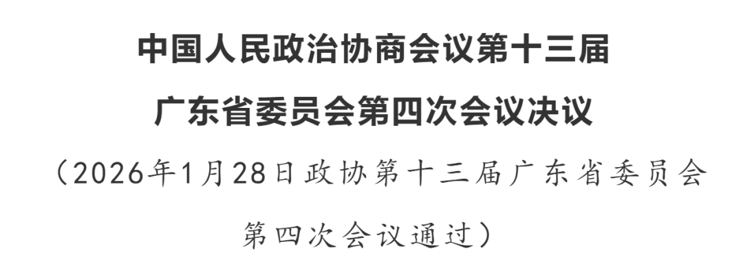 中国人民政治协商会议第十三届广东省委员会第四次会议,于2026年1月25日至28日在广州举行。