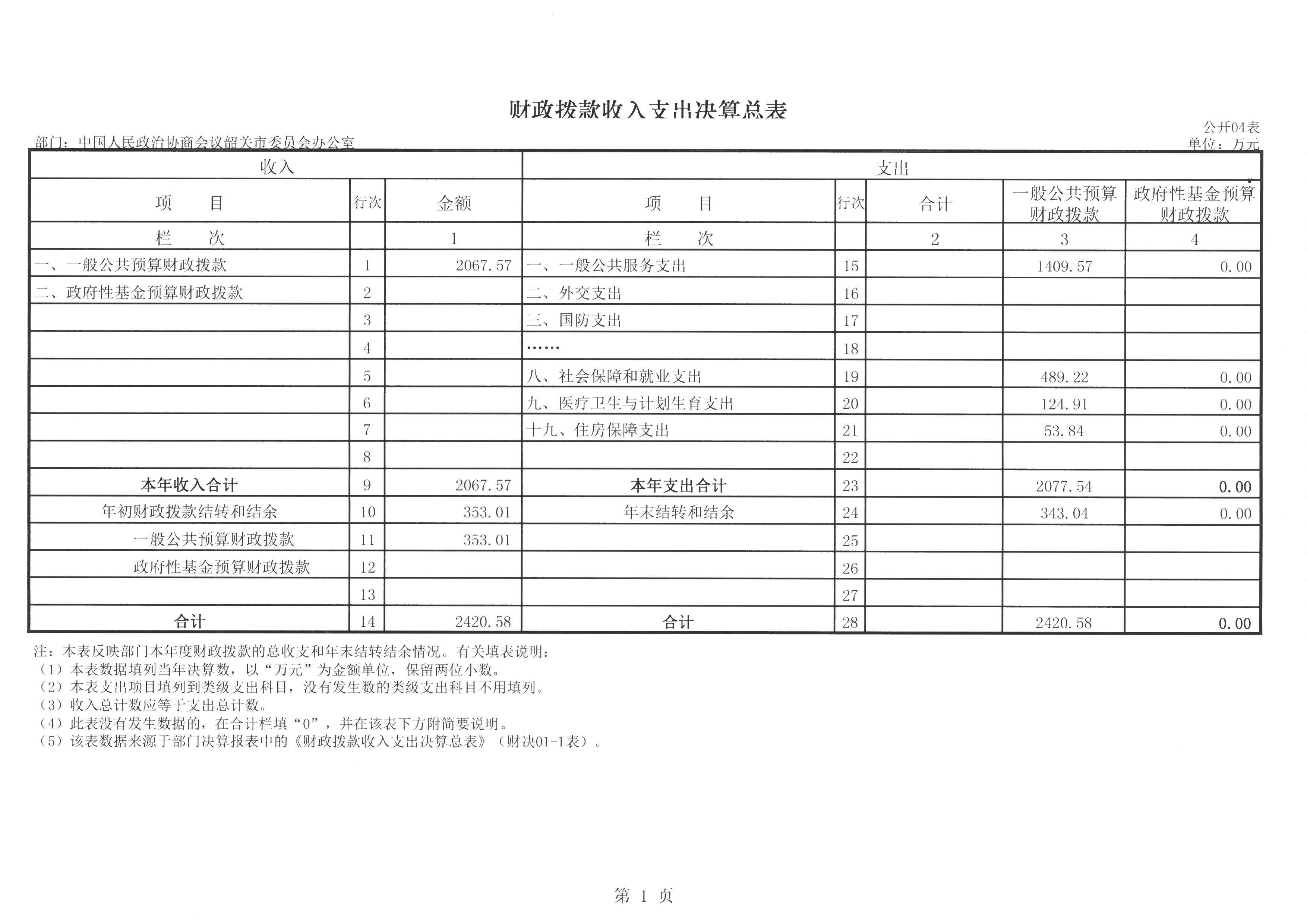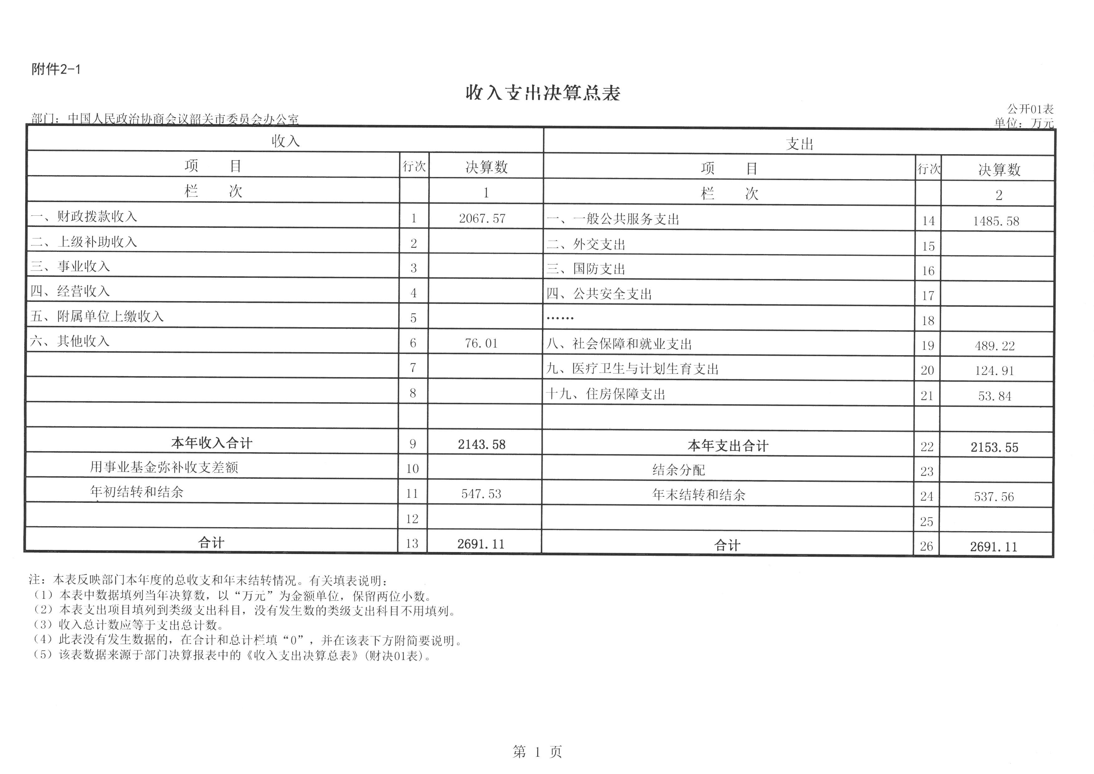 一、收入支出决算总表