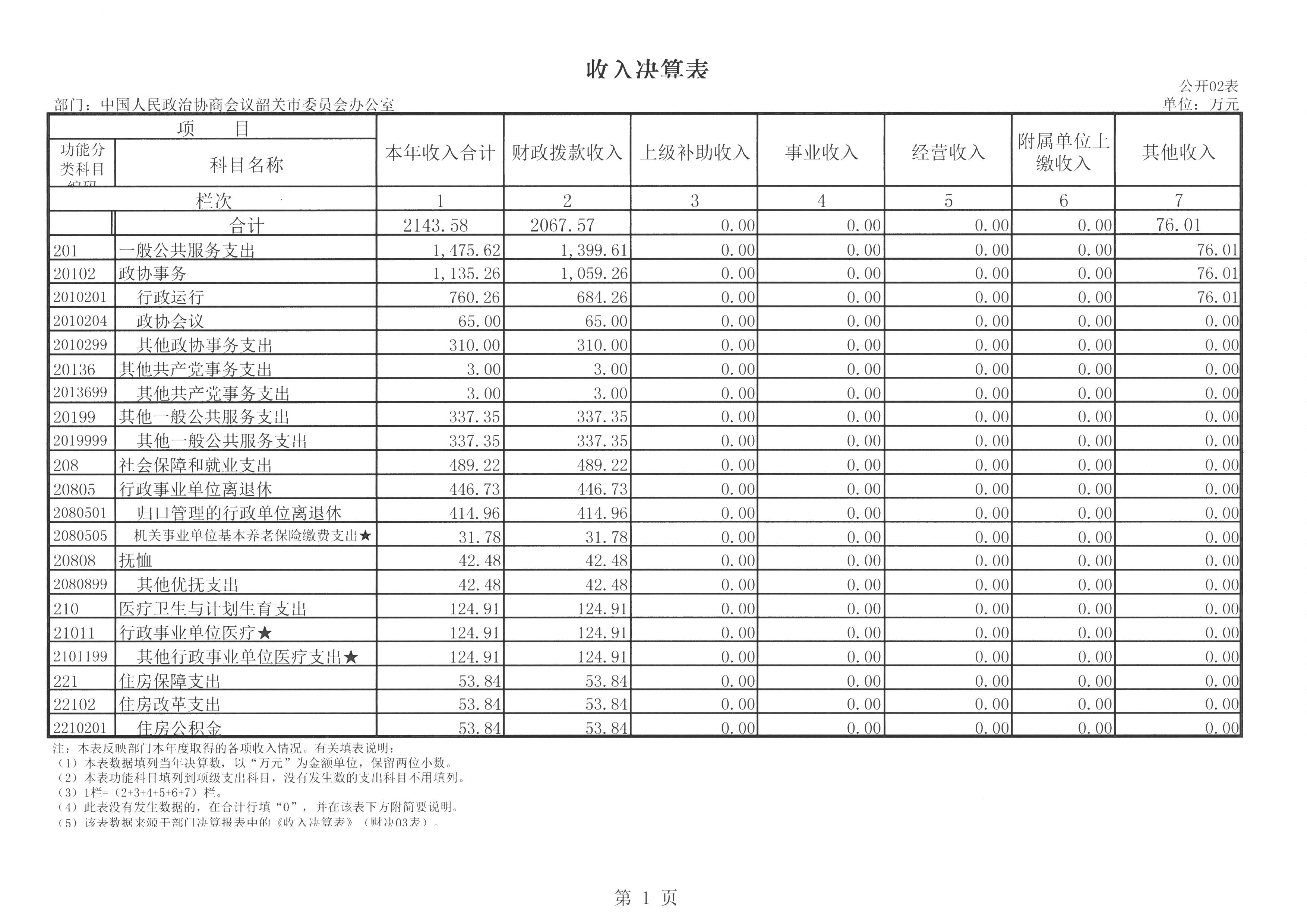 韶关市政协2017年度总收入2143.58万元,其中本年收入 2143.58万元。具体情况如下: