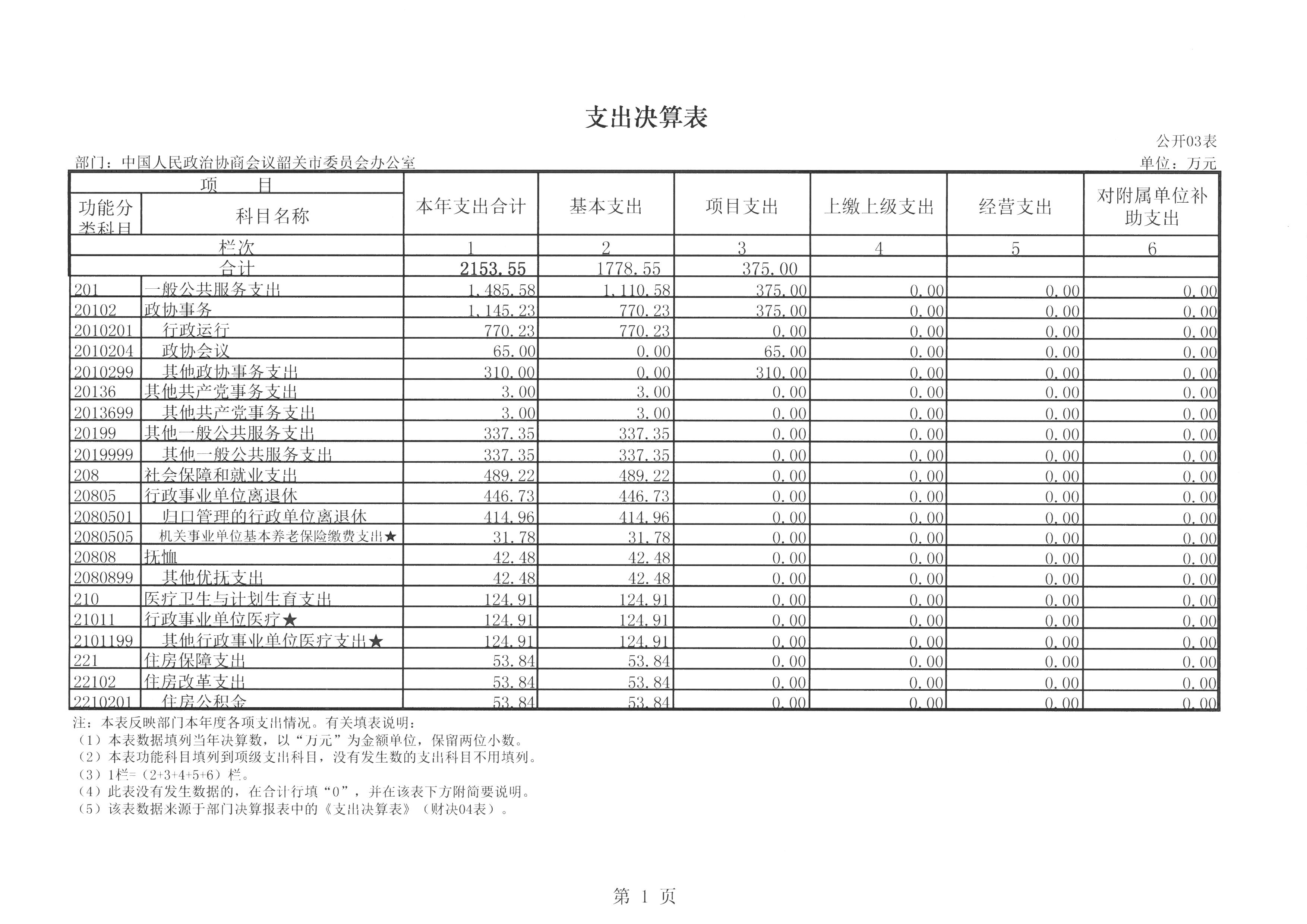 韶关市政协2017年度总支出2153.55万元,其中本年支出2153.55万元。具体情况如下: