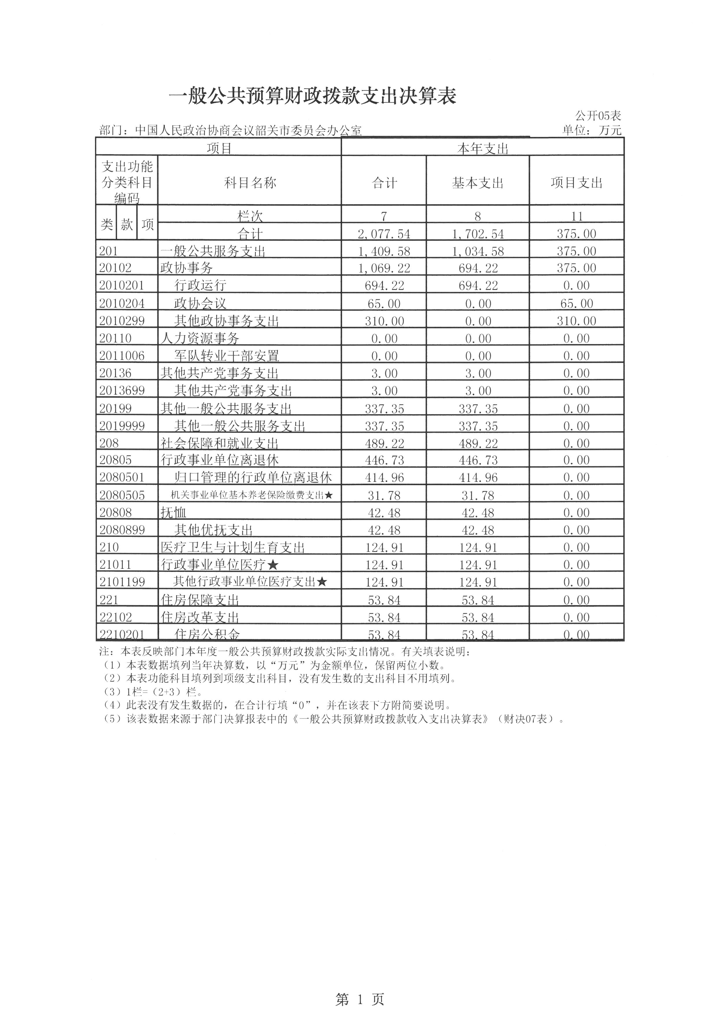 分功能科目看,1.一般公共服务(201类)支出1409.58万元,其中政协事务(20102款)支出1069.22万元,主要用于单位行政运行以及其他政协事务支出,其他一般公共服务支出(20199款)337.35万元,主要用于行政运行以及政协事务开支。2.社会保障和就业(208类)支出489.22万元,其中行政事业单位离退休(20805款)支出446.73万元,主要用于单位离退休人员工资福利,抚恤支出(20808款)42.48万元,主要用于单位抚恤金支出。3. 住房保障(221类)支出53.84万元,其中住房改革支出(22102款)53.84万元,主要用于单位住房公积金支出。4.医疗卫生与计划生育(210类)支出124.91万元,其中医疗保障(21005款)支出124.91万元,主要用于单位离休人员及厅级干部医疗费支出。