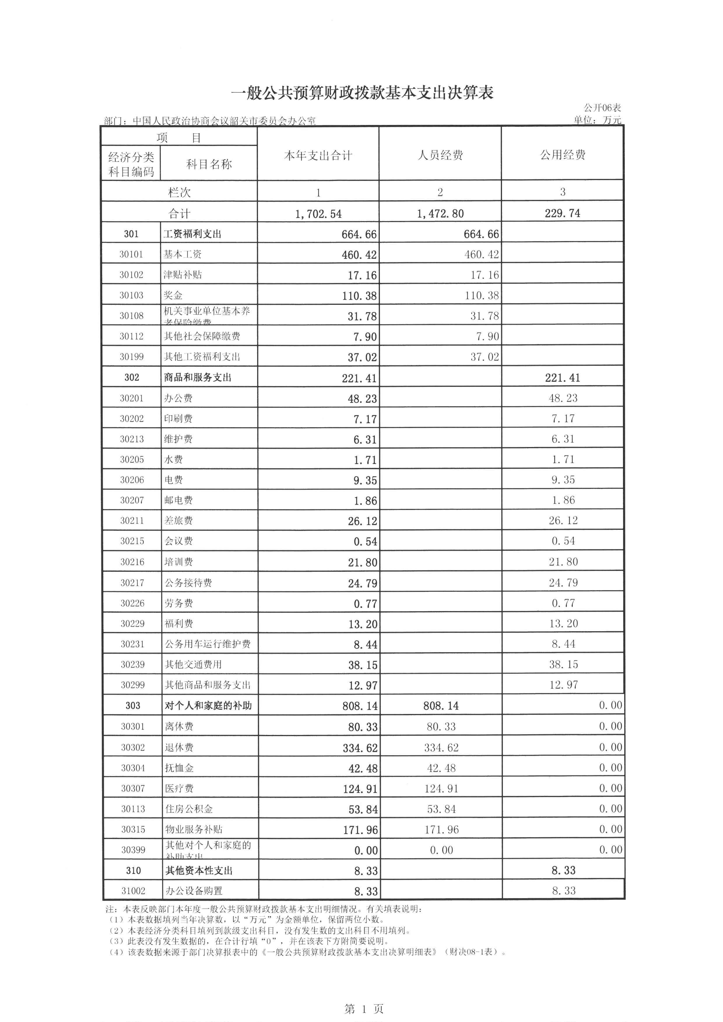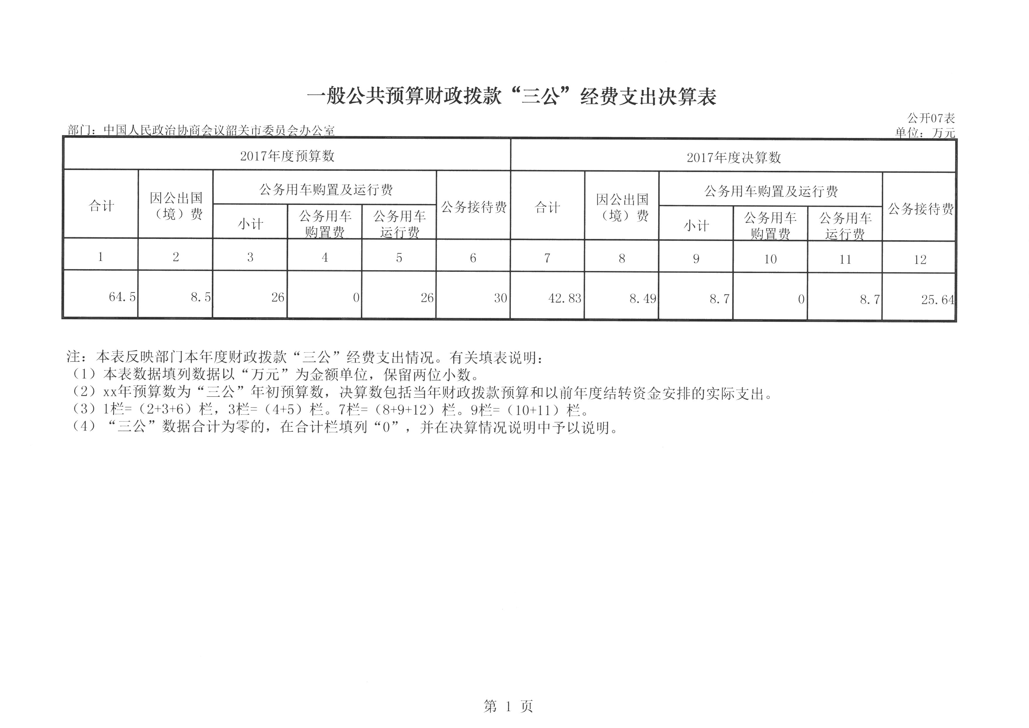 第二部分 韶关市政协2017年部门决算表